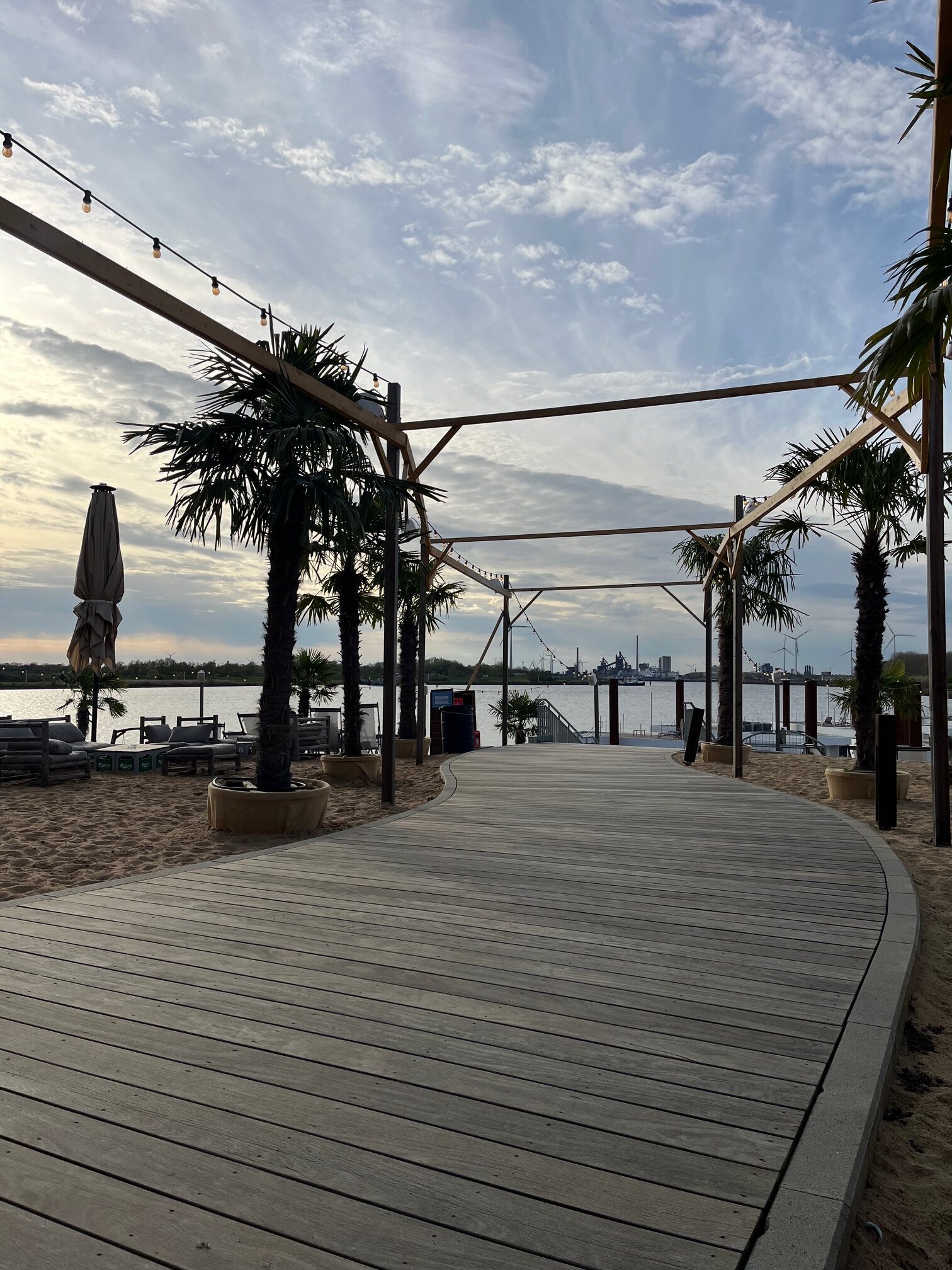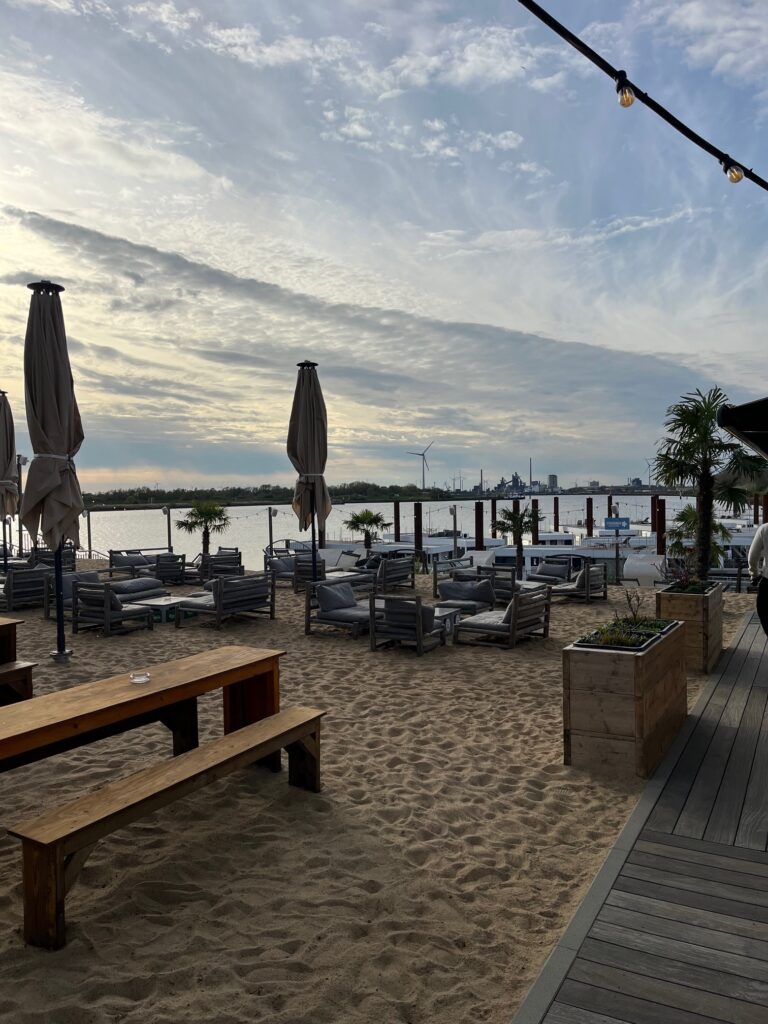 Für das neue Gastro- und Eventgebäude an der Landzunge des Lankenauer Höfts wurden die Außenanlagen umfassend geplant und realisiert. Als Erweiterung des Naherholungsgebiets „Weseruferpark“ entstand auf rund 12.000 m² eine neu gestaltete Freifläche mit hoher Aufenthaltsqualität. Das Gebäude wird von großzügigen Holzterrassen sowie einem etwa 2.200 m² großen Strandbereich umgeben, der vielfältige Sitz- und Liegemöglichkeiten bietet.